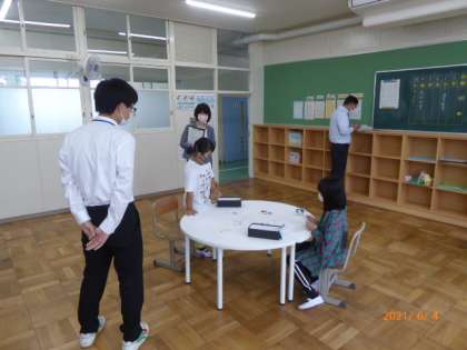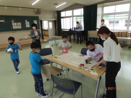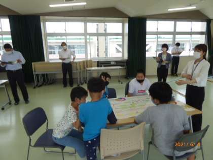 学校訪問でのなかよし学級の様子です。なかよし1組はすごろくゲームをみんなですることを通して、ルールを理解して仲よくゲームをすることを学びました。なかよし2組はことわざかるたで遊ぶことを通して、活動に集中することや、感じたことを文章で表現することに取り組みました。