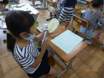2年1組は図工で「ふしぎなたまご」の制作に入りました。「ふしぎなたまご」は、ぱかっと割れたたまごの中から、夢いっぱいのアイデアが飛び出すというテーマです。