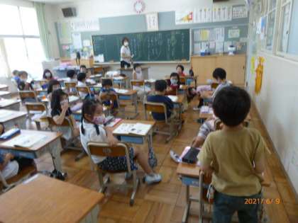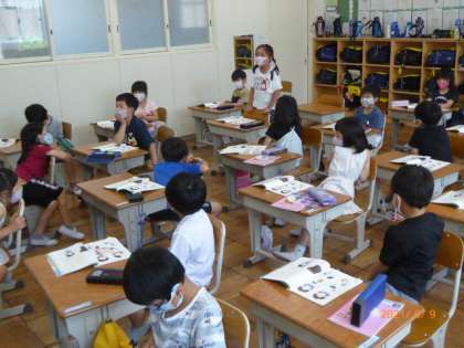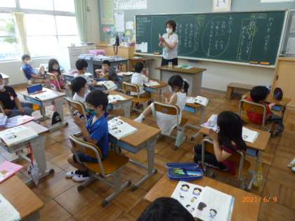 1年生の国語の勉強の続きです。発表できると大きな拍手がもらえます。