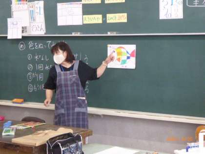 3年1組は図工で、絵の具の使い方について勉強しています。