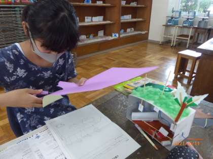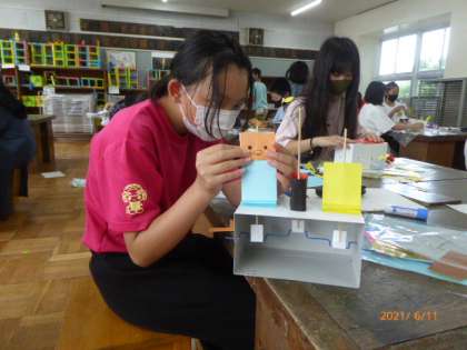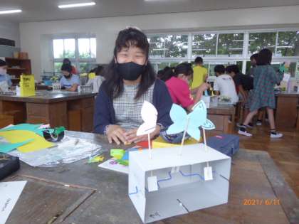 6年2組のくるくるクランクの続きです。もう少しで完成……最後の一工夫をがんばっていますね。