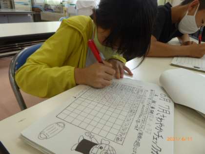 昼放課に保健室で、保健委員がさわやかチェックカードの点検をしてくれています。満点のカードにはていねいで心のこもった朱書きもしてくれています。ありがとね!