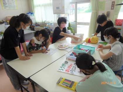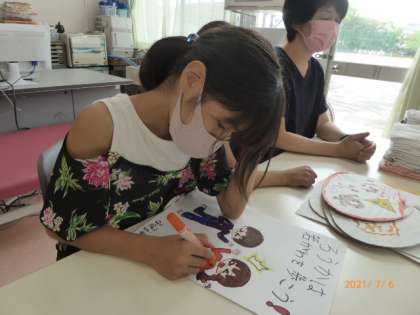 今日も大放課には保健委員が保健室に集まって先生のお手伝いや委員会活動をしてくれています。廊下は走らずに右側を歩くように呼びかけるポスターを制作中です。