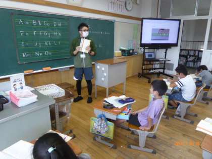 3年2組はローマ字の勉強をしています。これは「国語」の授業です。児童たちが「外国語じゃないの?」と不思議そうにしています。