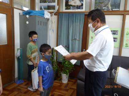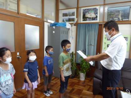 第37回社会を明るくする運動ポスター展で、本校児童がたくさんの賞をいただきました。校長室で表彰伝達をしました。