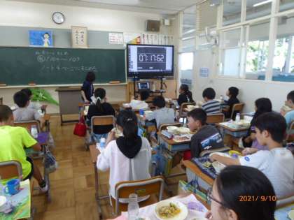 今回もたくさんの児童が児童会役員選挙に立候補してくれています。今週は、給食の時間に放送演説が行われています。今日は5年生の立候補者の推薦責任者による放送演説です。給食は「黙食」なので、静まりかえった中でしっかりと聞いています。