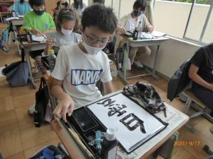 5年1組の書写の続きです。「白雲」は画数に差がありすぎて大きさのバランスを撮るのが難しいです。細かな筆づかいも必要です。