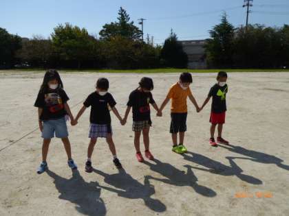 3年1組の「太陽を見よう」の続きです。太陽の観察を終えた後に、国語の「ちいちゃんのかげおくり」に出てくる遊びをしています。自分たちの影を10秒見つめてから青空を見ると、空に大きな影が見えます。「見えた!」と喜んでます。