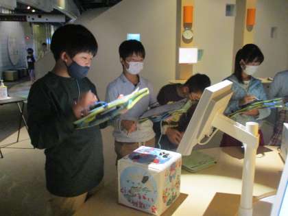 全体で地球温暖化に関するミニ映画や液体窒素の実験を見た後、グループ見学をしました。
