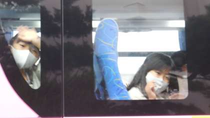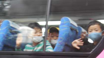 2年生がピンク色のバスに乗り込み、東山動植物園へ出発しました。うれしくて、うれしくて、、、。見えなくなるまで、ずっと手を振ってくれていました!