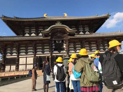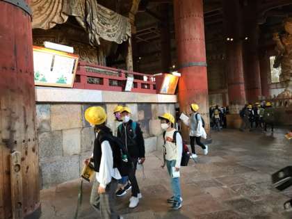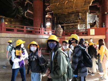 クラス写真を撮った後、班別研修です。東大寺の大仏殿から見学開始です。