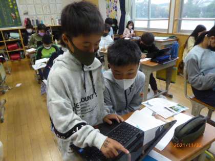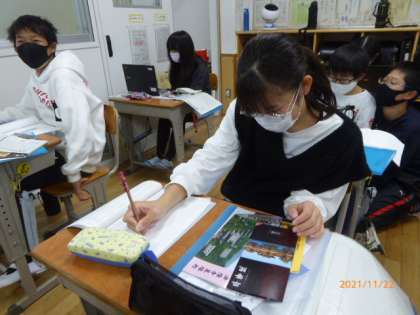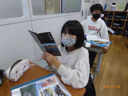 6年2組のパンフレットをつくろうの続きです。修学旅行で手に入れた見学先のパンフレットを参考にしています。