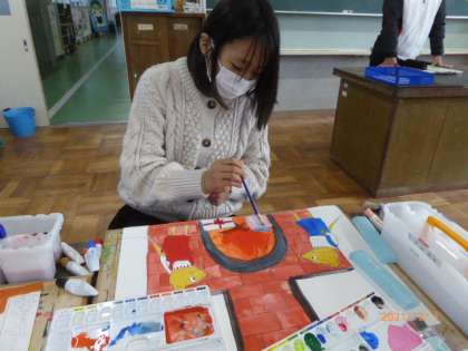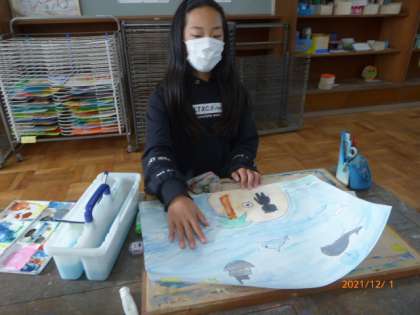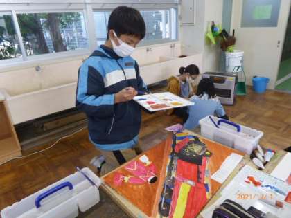 5年2組の図工「言葉から思いをひろげて」の作品です。読書したあとの感動を絵に表現します。