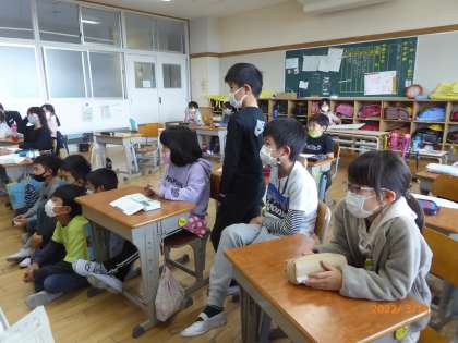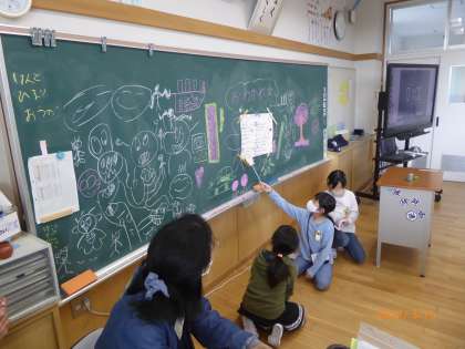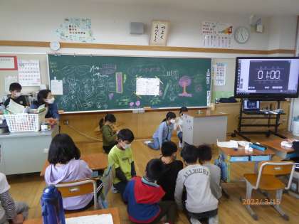 3年1組はお別れ会をしています。自分たちで企画して、グループごとにクイズや演奏を披露しています。楽しかった1年間がもうすぐ終わってしまいますね…