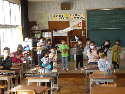 1年生のありがとうを伝えようの続きです。「きらきらぼし」を歌ってくれました。最初は普通に、次は振り付けをつけて、その次は、なんと英語で歌っています。すごいね!
