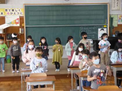 1年生のありがとうを伝えようの続きです。続けて楽器できらきらぼしを演奏してくれました。