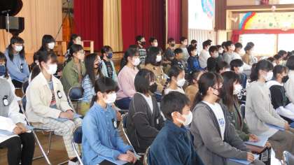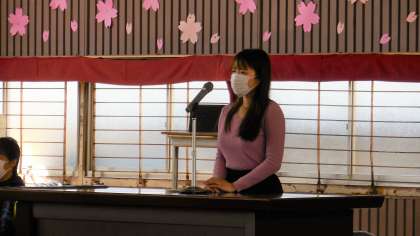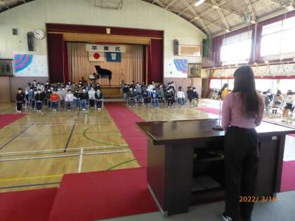 卒業式総練習の続きです。校長式辞です。校長に代わって、去年の担任の先生がお話をしました。