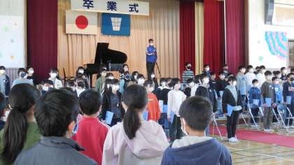 卒業式総練習の続きです。続いて5年生のよびかけと歌です。5年生もとても立派で歌がとっても感動的でした。