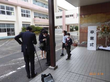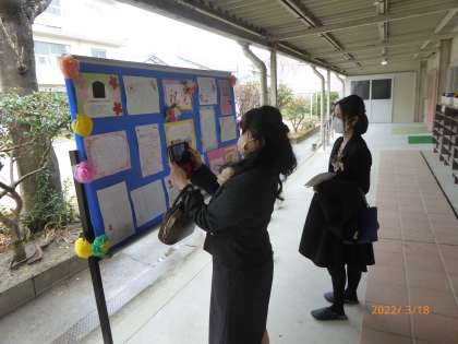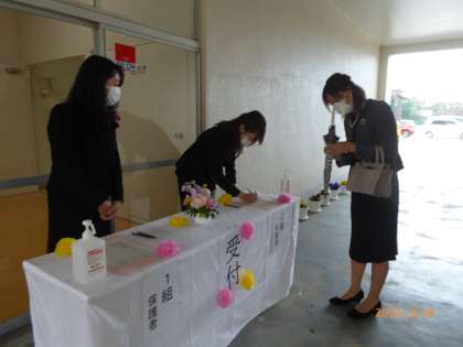 保護者の方々もいらっしゃいました。いっしょに写真を撮ったり、体育館横の祝電を見たりしておられます。