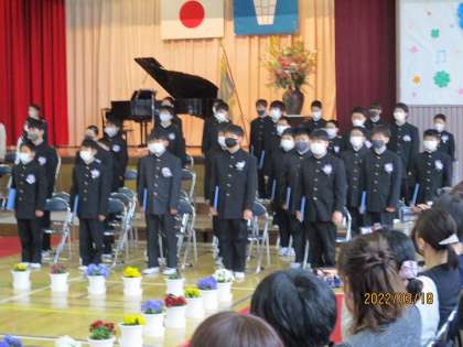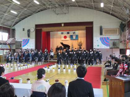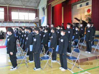 懐かしい恩師からの祝電を聞いたあとで、卒業生が起立しました。呼びかけが始まりました。