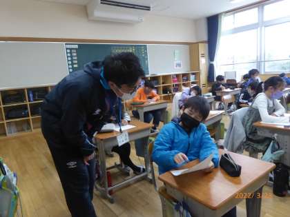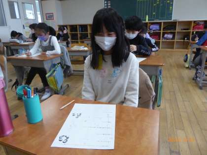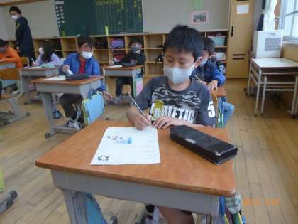 3年2組は「先生の通知表」を書いています。担任の先生はしっかりとがんばれたでしょうか? みんなから、どんな評価が下されるのかな?