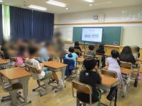 4年1組も春を感じられるものを見つけてタブレットで写真を撮っています。
