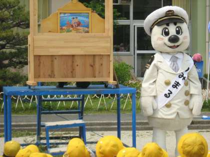 「うみまるくん」も応援にかけつけてくれたり,「海ガメの紙芝居」も見せてもらったりして海岸へ出かけました。