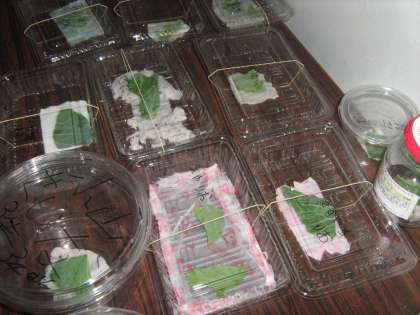 今はまだ幼虫なので,このようにキャベツの葉に乗せて育てています。