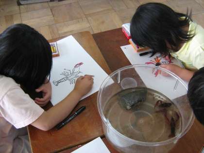 2年生では生活科の授業で「ザリガニ」を飼育観察しています。
