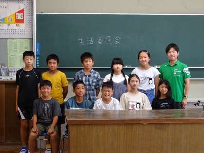 大放課に卒業アルバムの写真撮影をしました。生活委員会は理科室で写真をとりました。