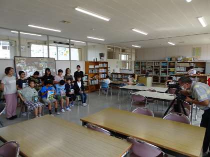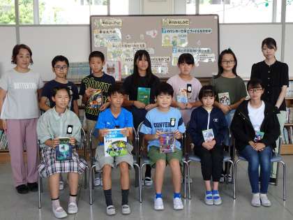 6年生のアルバム写真撮影の続きです。今日の最後は図書委員会です。みんな手に本を持っています。