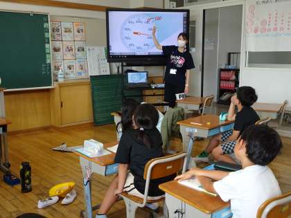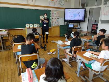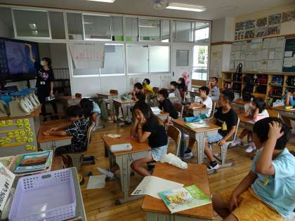3年2組は算数の勉強中です。はかりを使って、重さを数で表します。「重い」「軽い」という感覚だったものを、「○○グラム」という数の世界で表現していきます。はかりのめもりの読み方を確認しているところです。