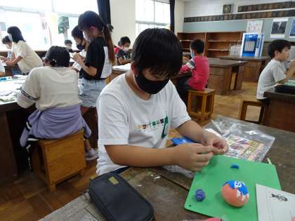 4年2組は図工で「元気のおまもり」を制作中です。好きなもの、興味があるもの、おもしろいものなど、見ると元気になれる形を考えました。制作中の様子を紹介します。