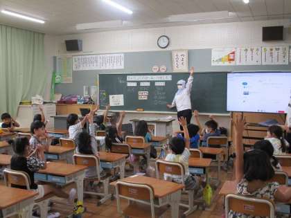 1年1組は、4時間目に栄養教諭の森山先生による食育の授業がありました。
