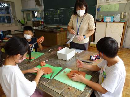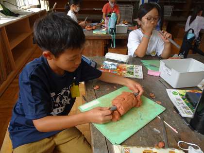 3年1組は図工で粘土に挑戦しています。粘土を手でこねるだけではなく、いろいろな道具を使って作品を作ります。どんな作品ができあがるか楽しみです。
