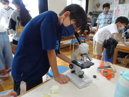6年2組のミジンコの観察の続きです。「校長先生、見て見て!」と私に声をかけてくれて、ミジンコを見させてくれました。教科書に載っているような半透明のミジンコがくっきりと見えました。残念ながら、その写真をとることはできませんでした。