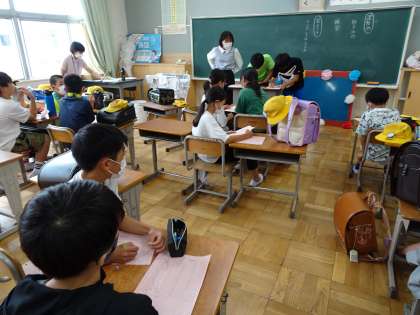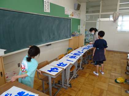 臨時委員会の続きです。総務委員会はスローガンの看板を作りました。給食委員会は得点板の係の進め方です。生活委員会は審判のしかたについてです。