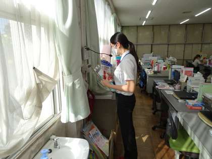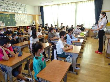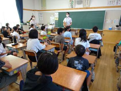 今日から3週間、教育実習生が来ます。鬼北タイムに全校放送であいさつと自己紹介をしてもらいました。その後、教室へ行って担当のクラスでもう一度自己紹介です。