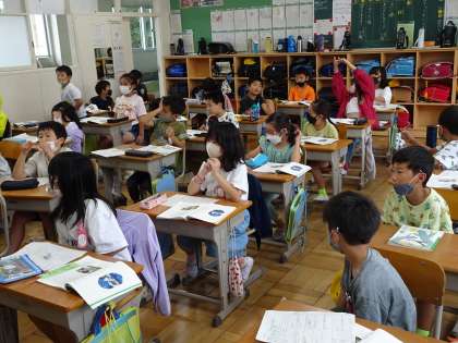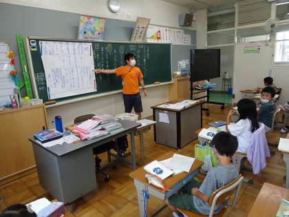 2年1組は国語で「どうぶつ園のじゅうい」の勉強をしています。