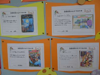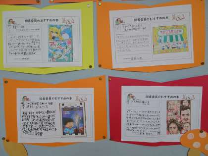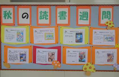 図書室横の掲示板に、秋の読書週間の取り組みとして図書委員によるおすすめ本が掲示されました。おもしろそうだなあ、という本があったらぜひ読んでみてくださいね。
