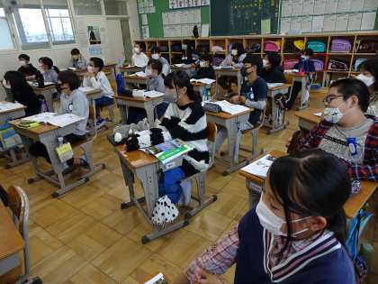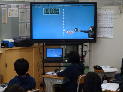 5年1組は理科でふりこの勉強をしています。ひもの長さを同じにして、重さの異なる3種類のおもりをつるして揺らします。当然、重いもののほうが早く(周期が短く)なると予想しますが、はたしてどうでしょうか。