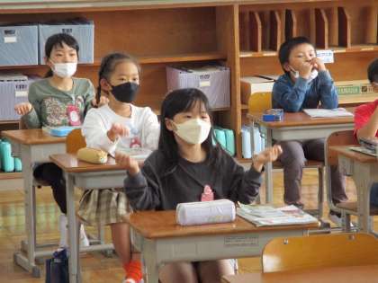 音符の長さに気をつけて、大きな声でぴったりそろえて言えました♪