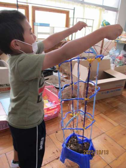 1年生ががんばって育てたアサガオも、もう終わりの季節となりました。