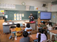 1年生が秋を探しています。野原に行って、いろいろな色を探します。