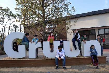 Gruunとこなめに着いたら,最初に集合写真を撮りました。みんなお気に入りの文字の近くで,とってもいい顔をしています。