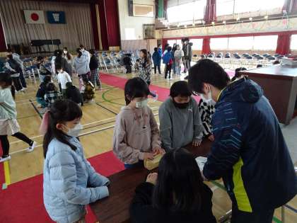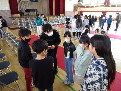 大放課に新しい班長さんに体育館に集まってもらいました。この一週間、来年度の新しい通学班で登校しましたが、問題がなかったかどうかの確認と、新1年生に会いに行って、集合時刻や集合場所を伝えることの2点です。安全で安心な登校ができるよう、よろしくお願いします。