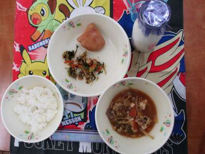今日はご飯に、ふりかけをかけて食べました。「ご飯がパクパク食べれるふりかけ」です!