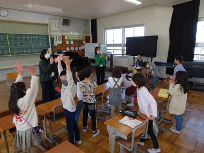 1年1組のサプライズコンサートの続きです。実は、1年1組のみんなから、音楽の先生へのサプライズプレゼントもありました。みんなからの感謝のメッセージカードです。1年間、楽しい音楽の授業をありがとうございました!