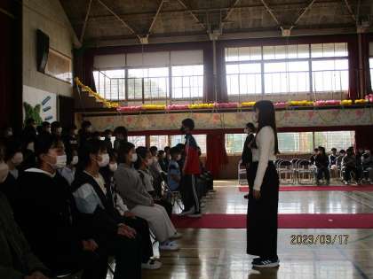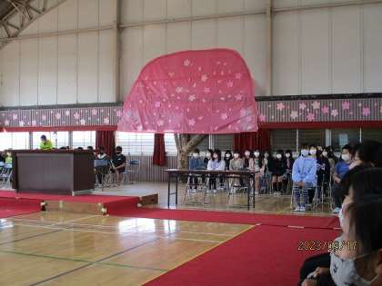 2時間目に、卒業式の総合練習を行いました。4年生、5年生の見守る中、入場から本番通りに流します。