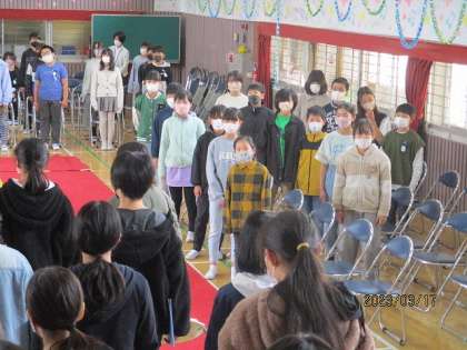 5年生が、真剣な表情で6年生に届けたメッセージ、歌…。すばらしかったです。